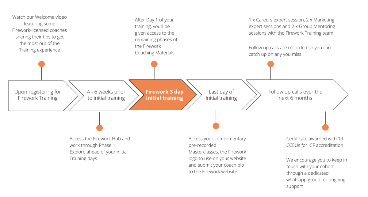 Once you’ve registered for the Training, you’ll gain access to the Firework Hub – our user-friendly online platform housing all the coaching exercises for clients and your coach guidance notes.